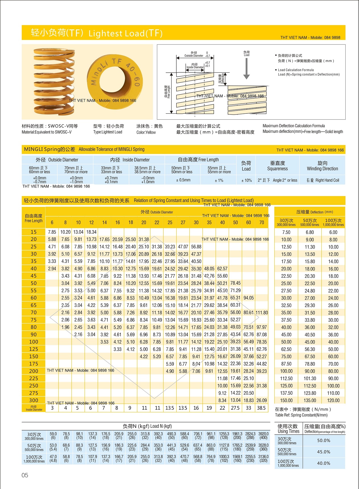 4. Chọn SWR46-60,  SWR46-70, SWS46-60, và SWR46-70 từ catalog, và xác nhận khoảng nén  F.